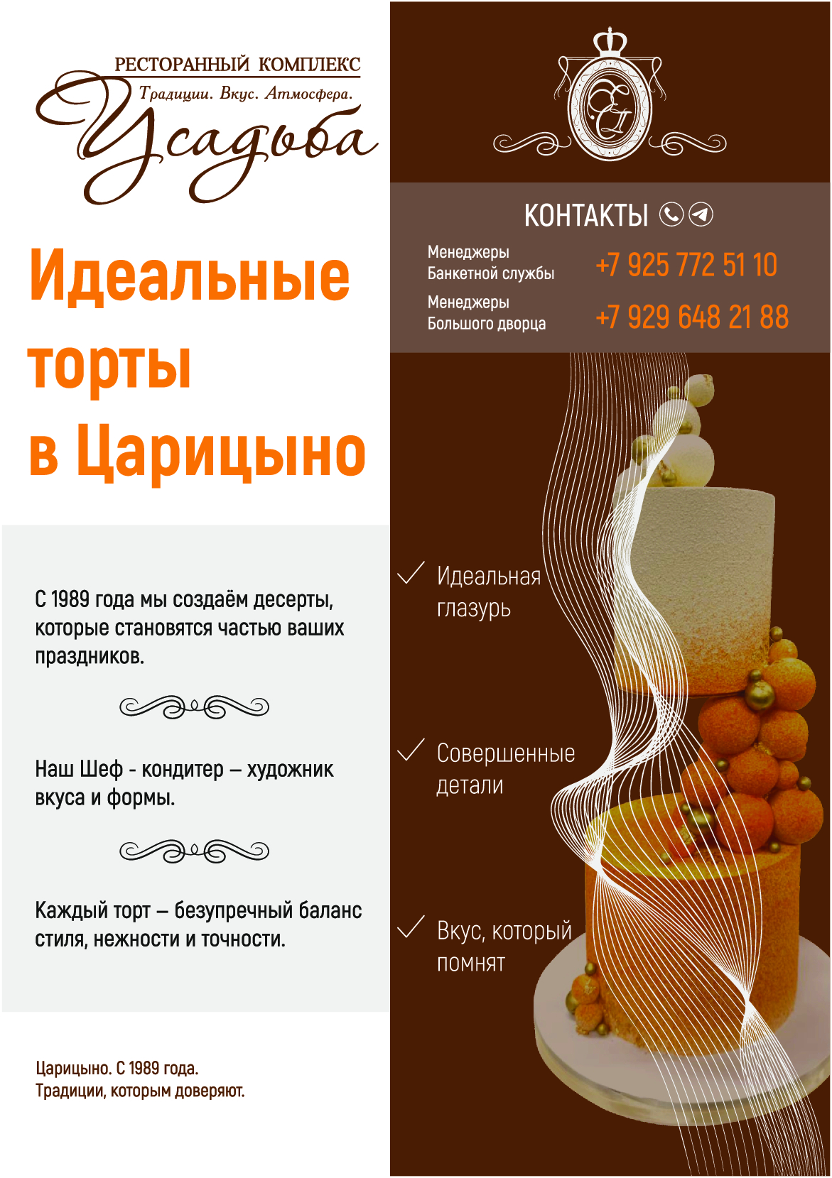 В ресторанном комплексе «Усадьба» можно не только заказать торт, но и провести праздник - день рождения, свадьбу или корпоратив.